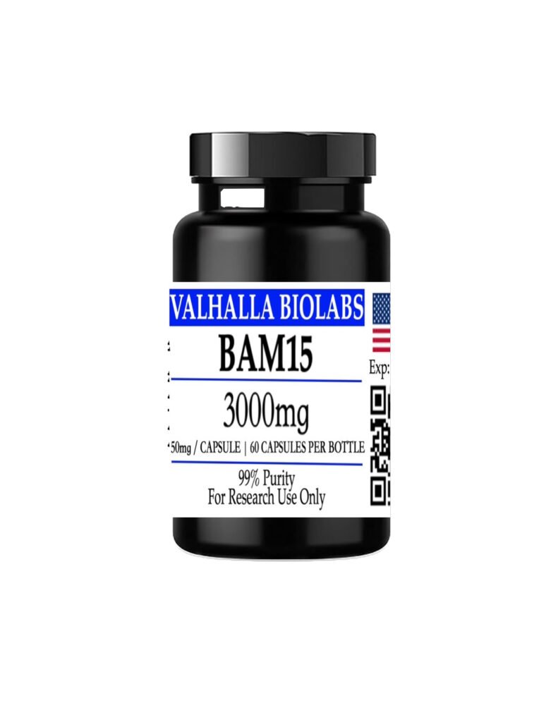 BAM 15 provided in 50mg pre-measured capsules, 60 capsules per bottle. Packaged in a sealed, tamper-evident container. Intended for laboratory research, chemical analysis, and other controlled applications. Not for human or veterinary consumption. Not a dietary supplement.
